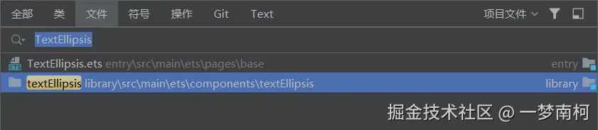 根据前面的目录结构,我们已经知道了entry是样例文件,那么我们要找的文件,就是在 entry\src\main\ets\pages\base\TextEllipsis.ets里