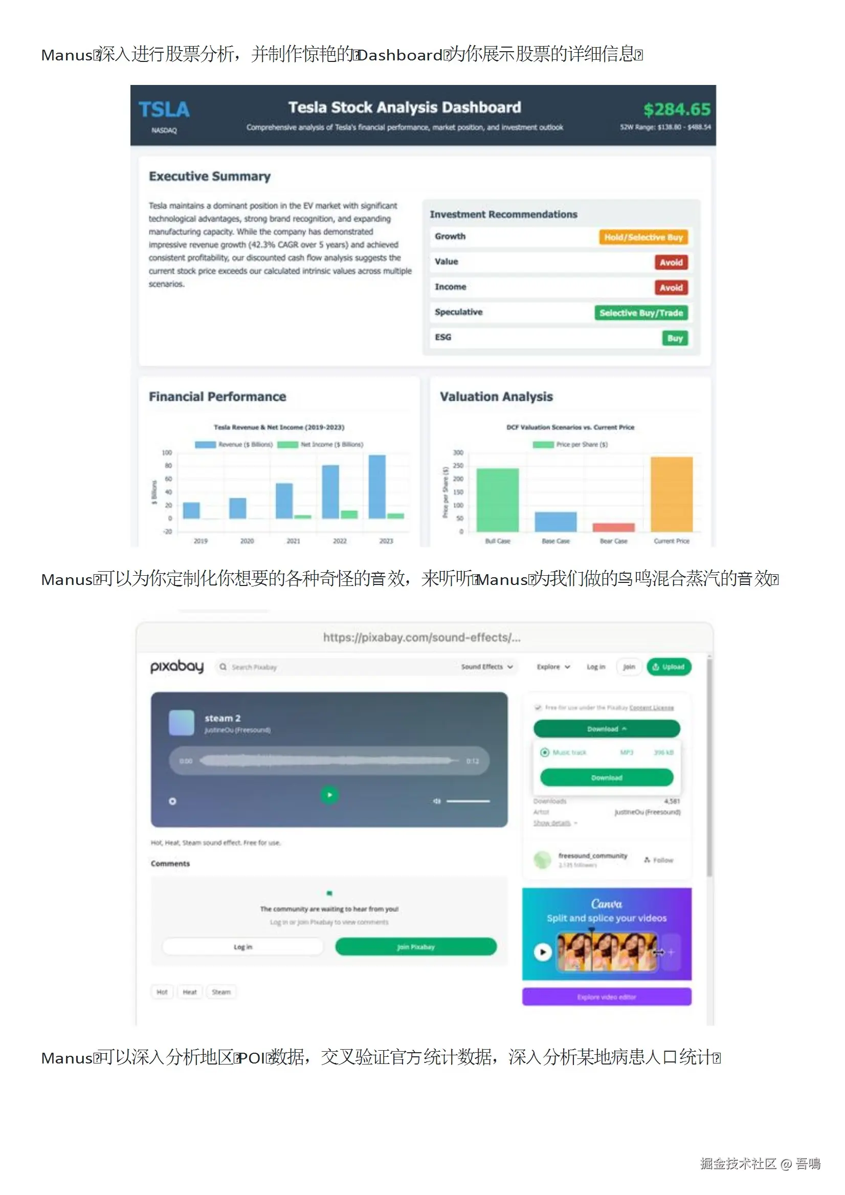 提供大量实际案例,如生成旅行手册、编写网页游戏、分析财报数据、整理法律合同等,展示Manus在生活、商业、教育等领域的应用。案例包含详细的任务指令、执行步骤和交付成果,突出其“行动智能”特性。