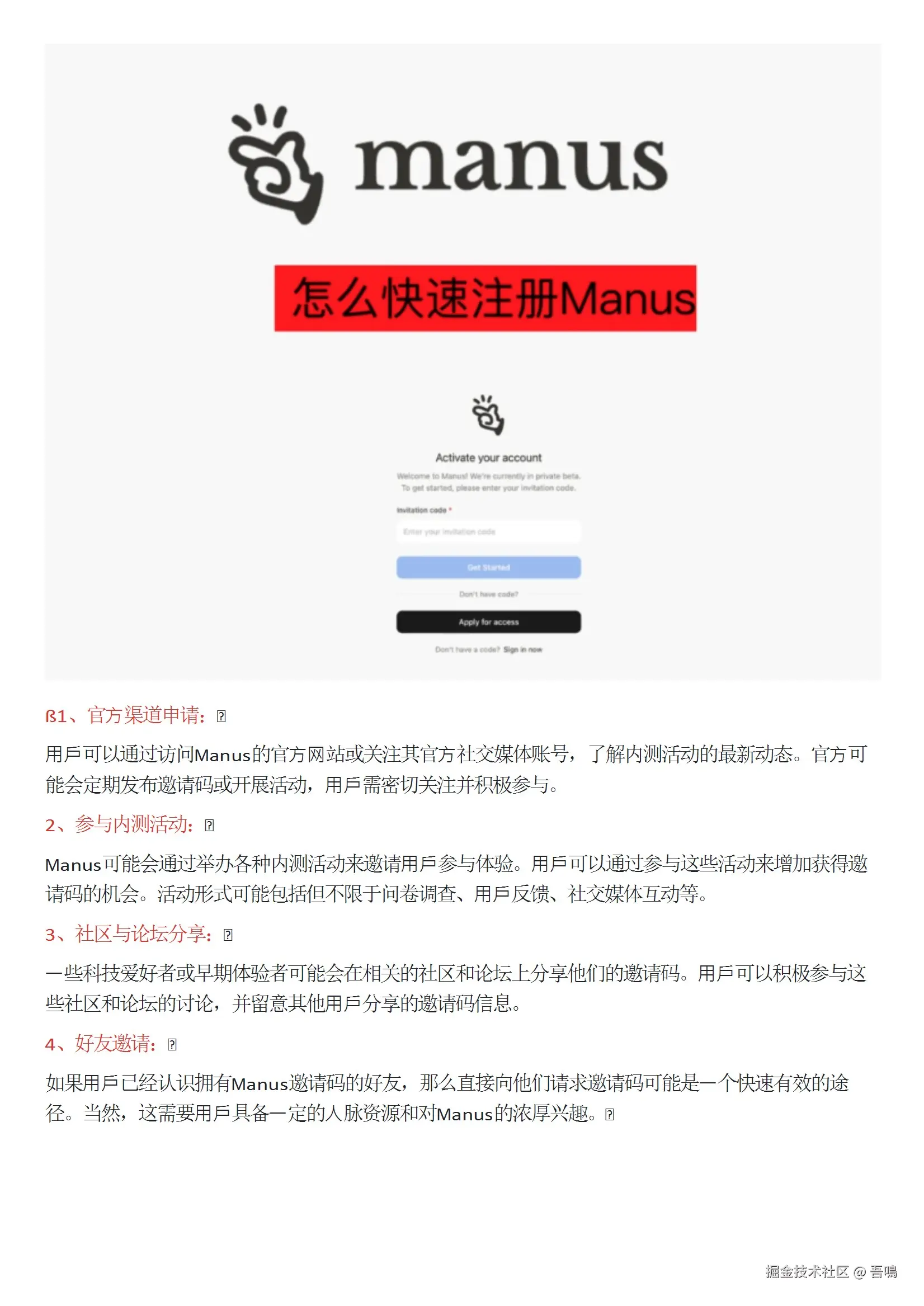 说明如何通过官方渠道、社区分享、内测活动等方式获取邀请码,并提供注册流程指引。同时提到产品当前处于内测阶段,存在部分限制(如上下文长度、网站验证问题等),但团队持续优化中。