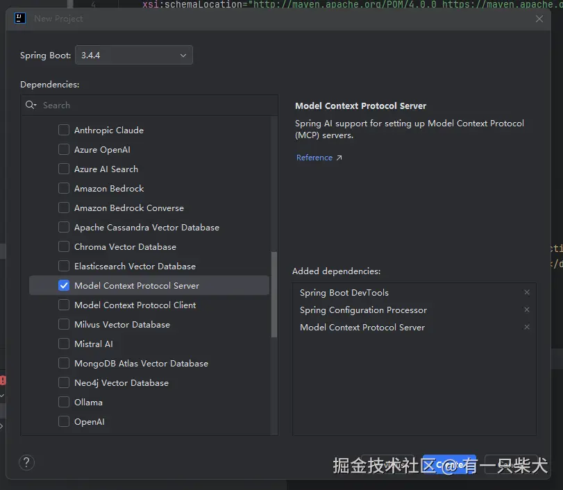 和常规的构建Spring Boot工程一样,只是这里选择MCP Server依赖。如果没有勾选,后续自己添加相应依赖即可。