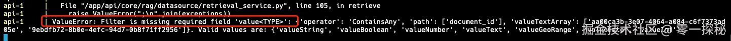 执行测试的时候发现基于元数据过滤这种方式检索没生效,查看控制台日志发现报错,有bug......😂