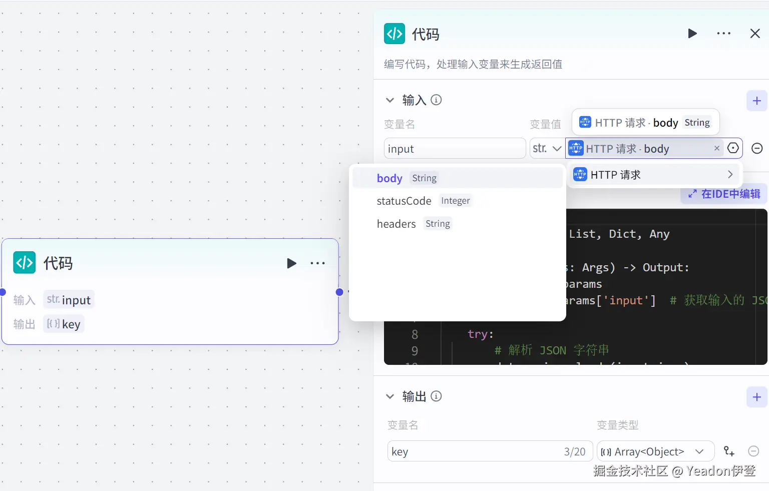 HTTP请求返回的是JSON数据, 飞书多维表格需要数组格式。 怎么办? “代码节点” 闪亮登场! 复制粘贴以下代码, 一键搞定数据格式转换! (看不懂代码? 没关系! 直接用就行!😎)
