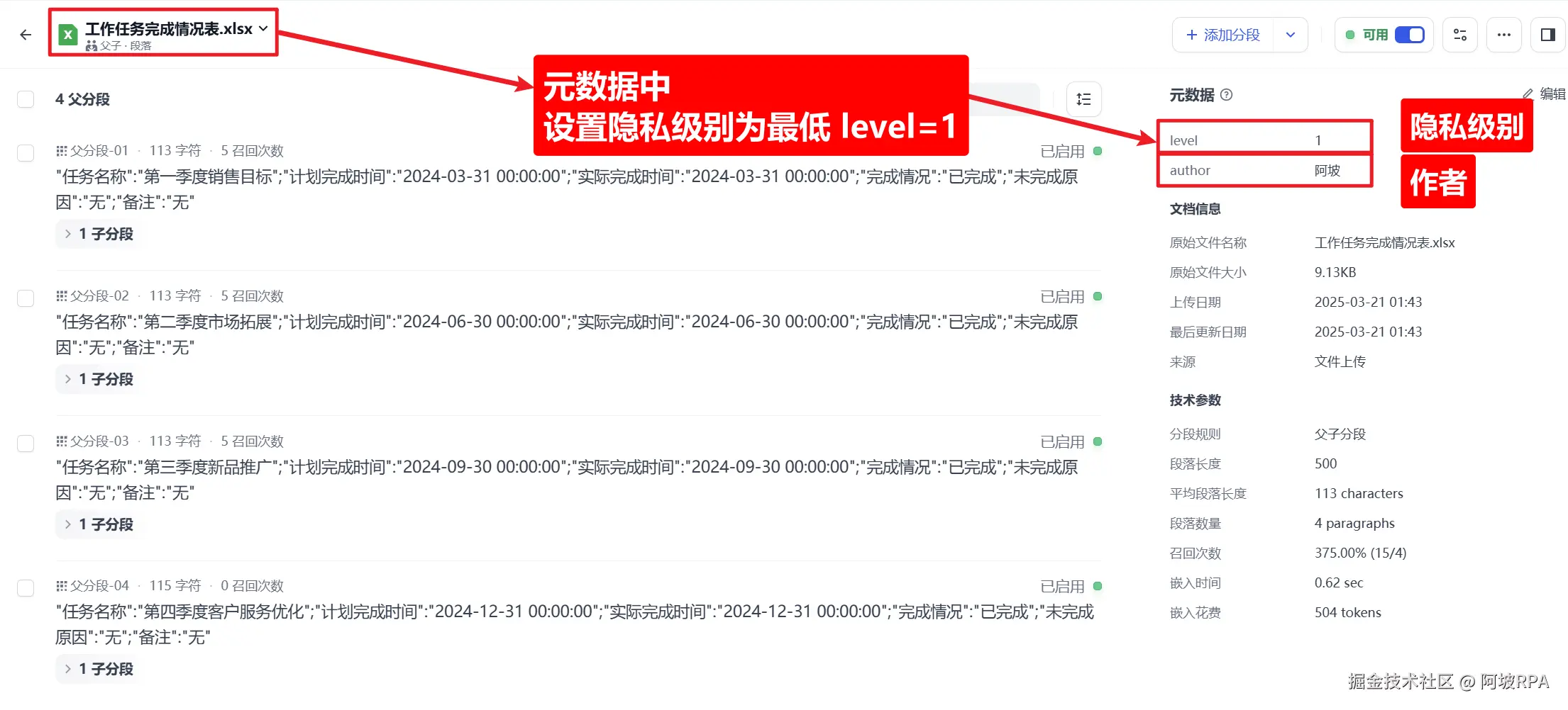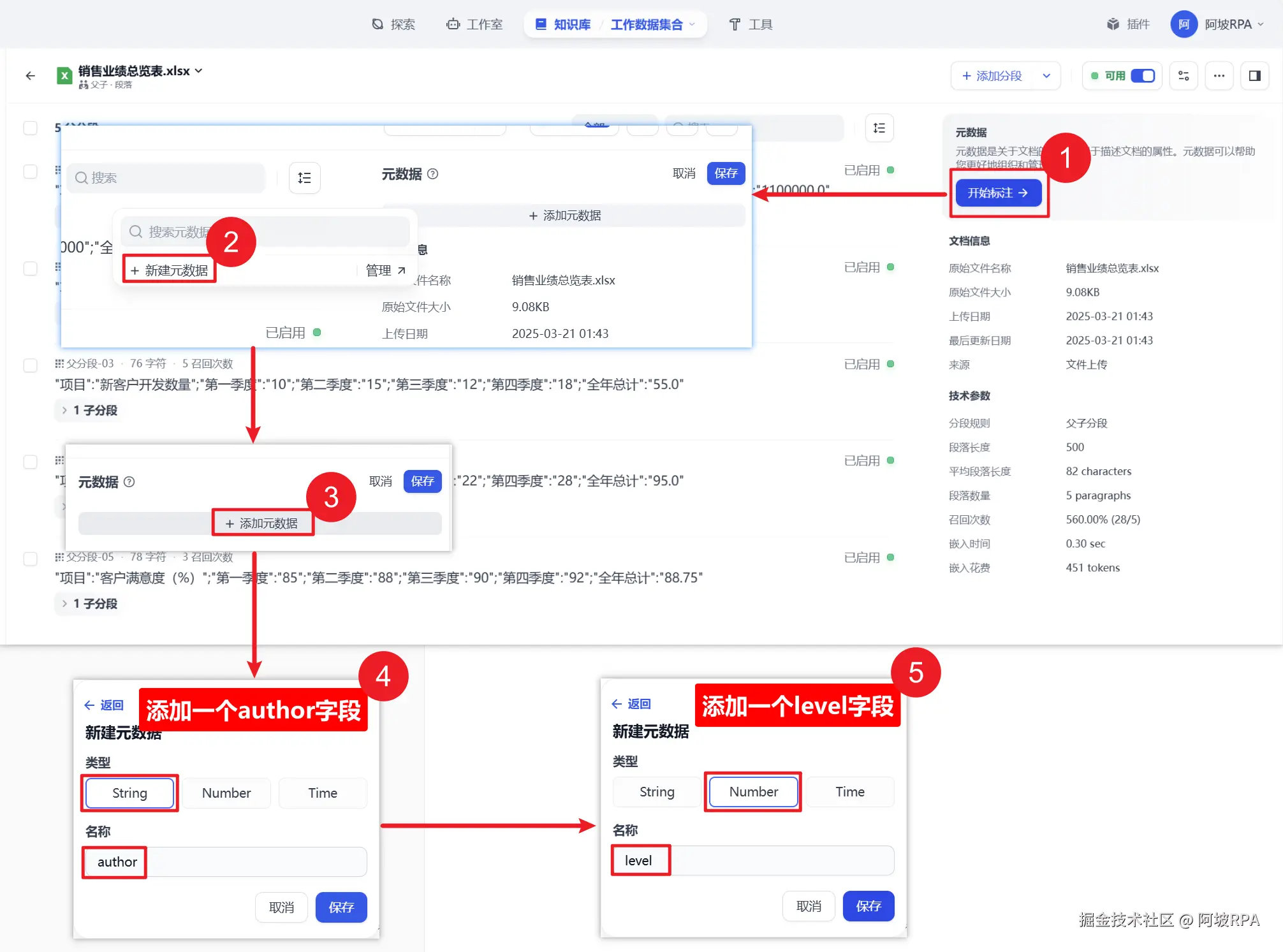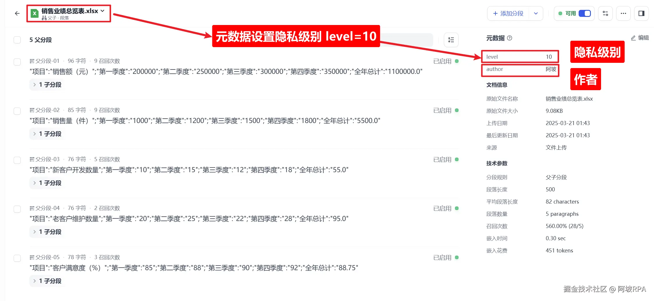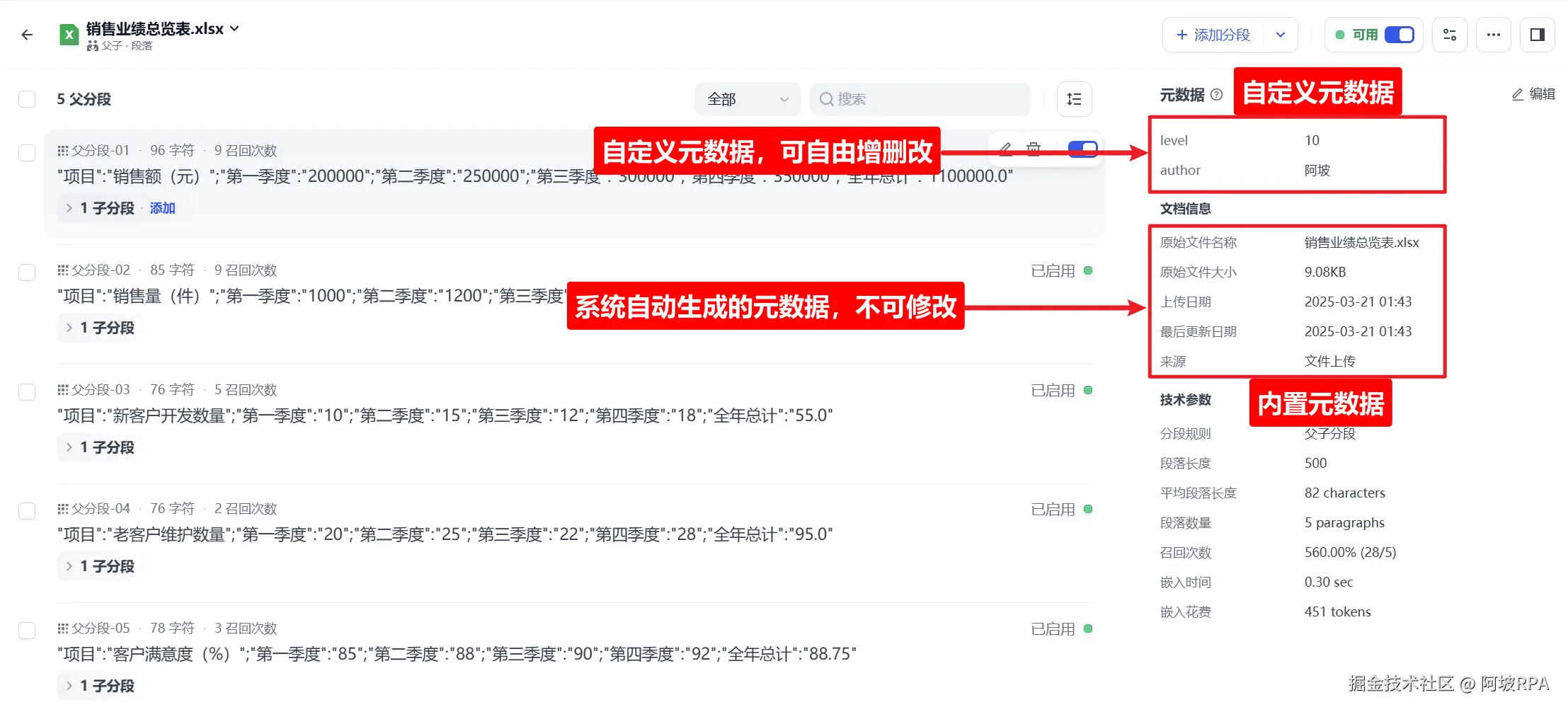 通俗来说,可以将 “元数据” 理解为你为知识库文档设置的一个个属性,比如:隐私级别,作者,分类等等。一个文档可以有多个属性。其实元数据在我们生活中处处存在,知识大家不知道他的专业名称而已。
