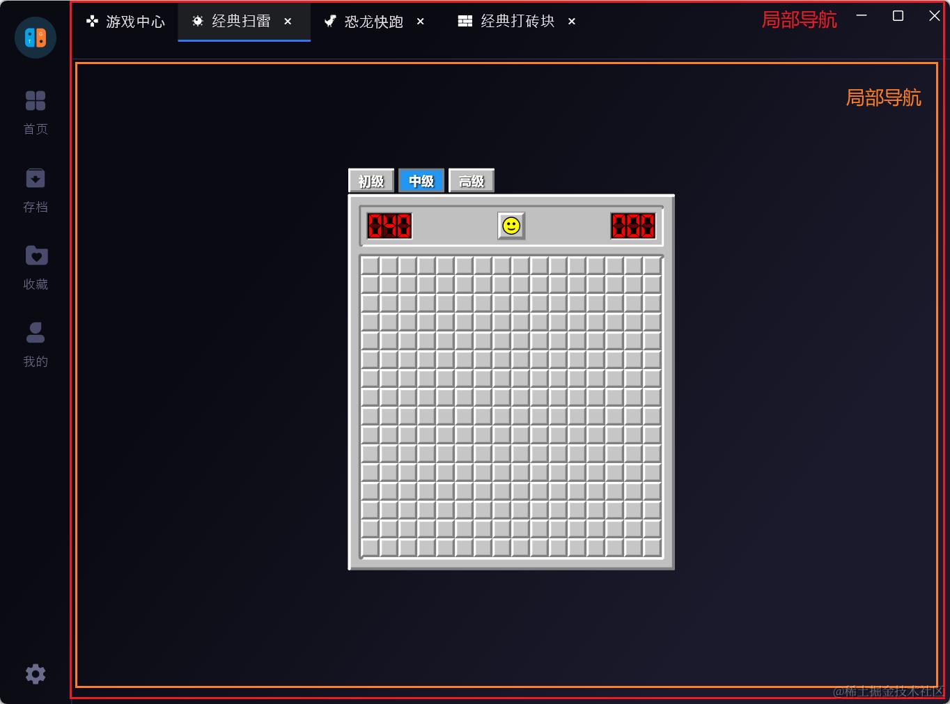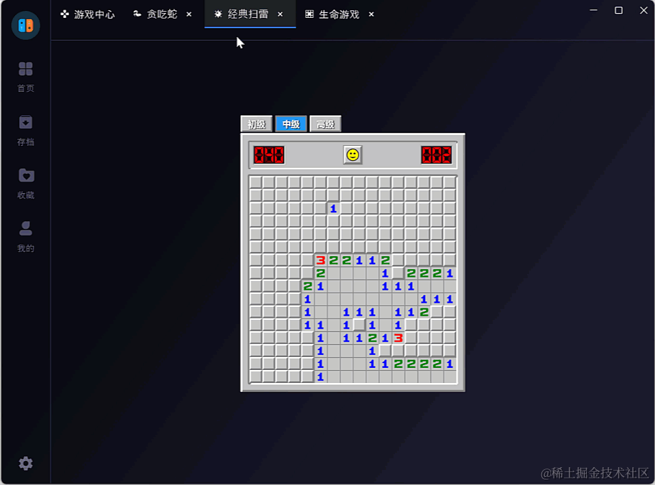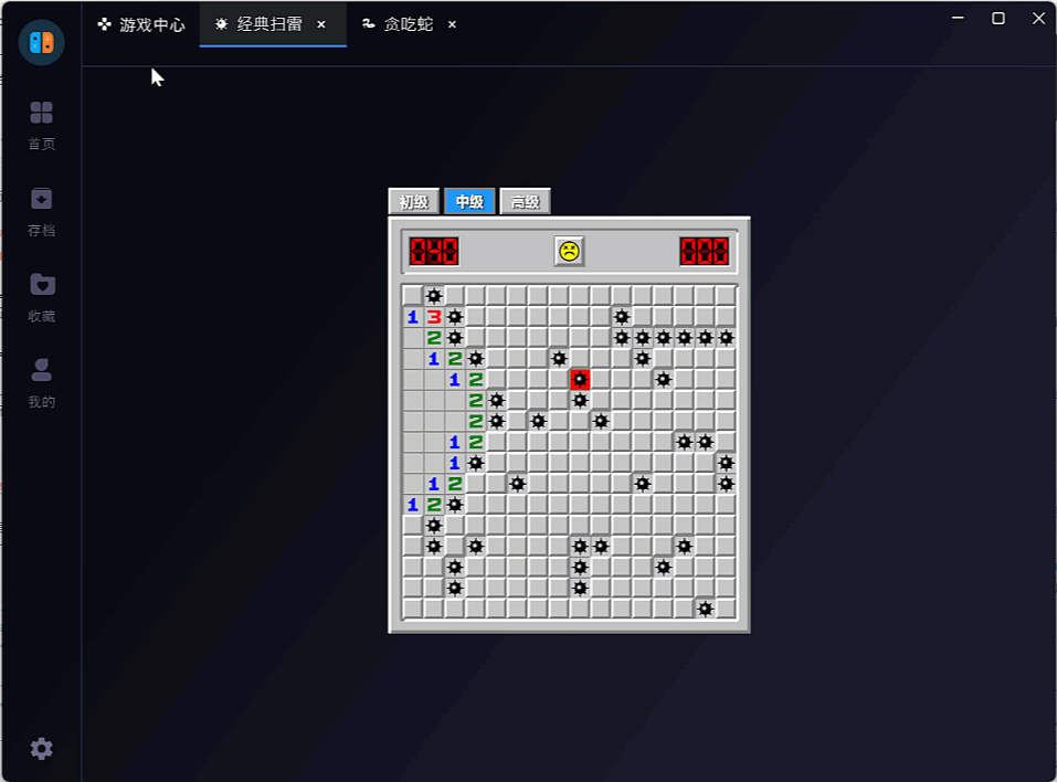目前虽然完成了游戏的打开和切换操作,但是切换游戏之后,游戏界面会销毁。下次进入时重新构建,这样游戏的状态就会丢失。如下所示,由扫雷切换到贪吃蛇后,在切回扫雷,状态就会重置: