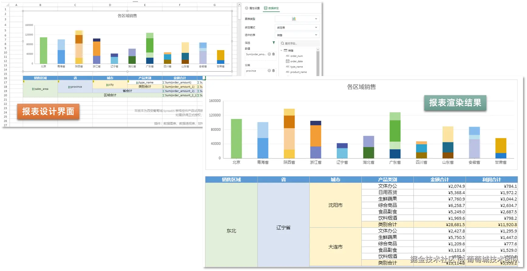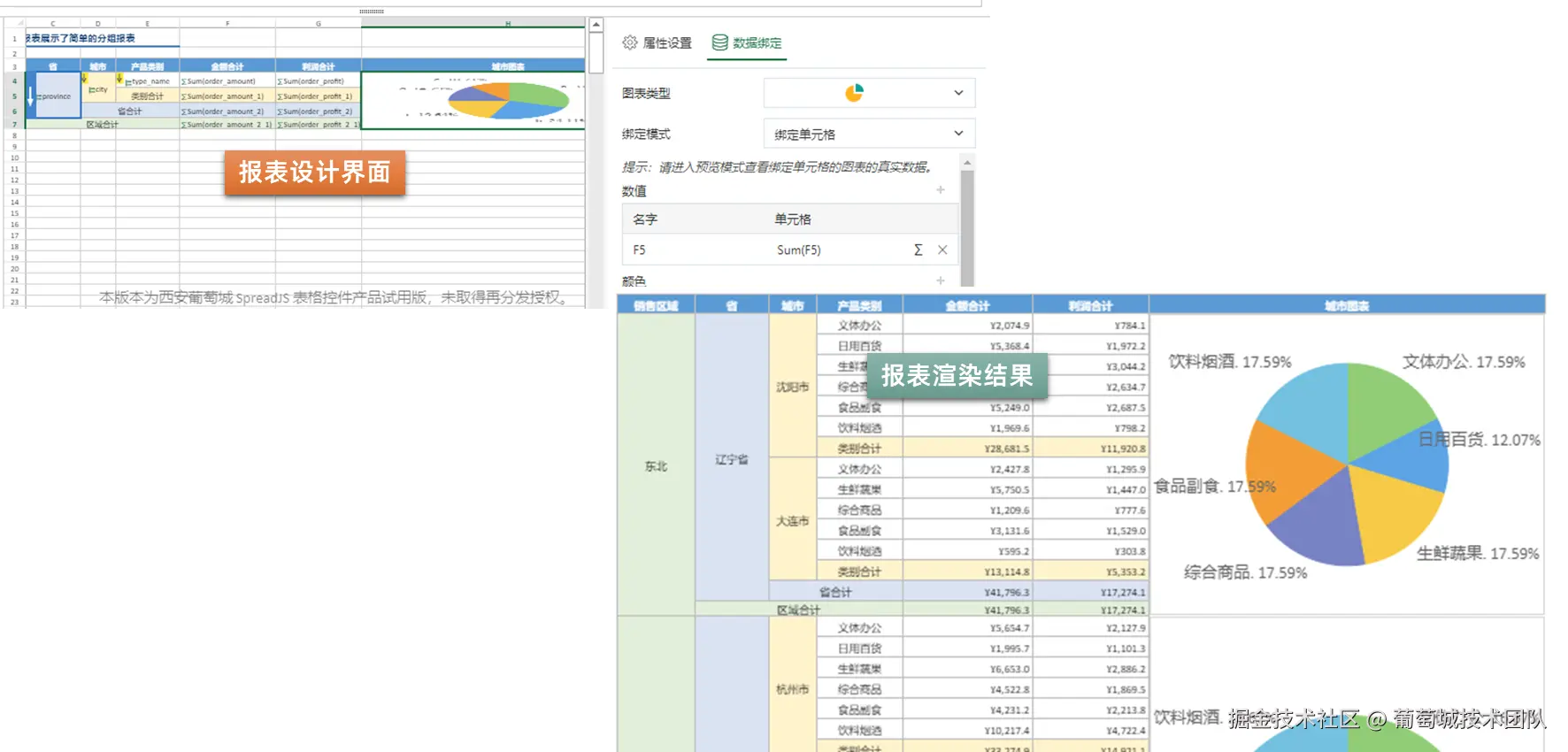 - 浮动图表 & 单元格图表:支持分页浏览,同一报表内对比多组数据;单元格图表(类似迷你图)可绑定动态数据源。