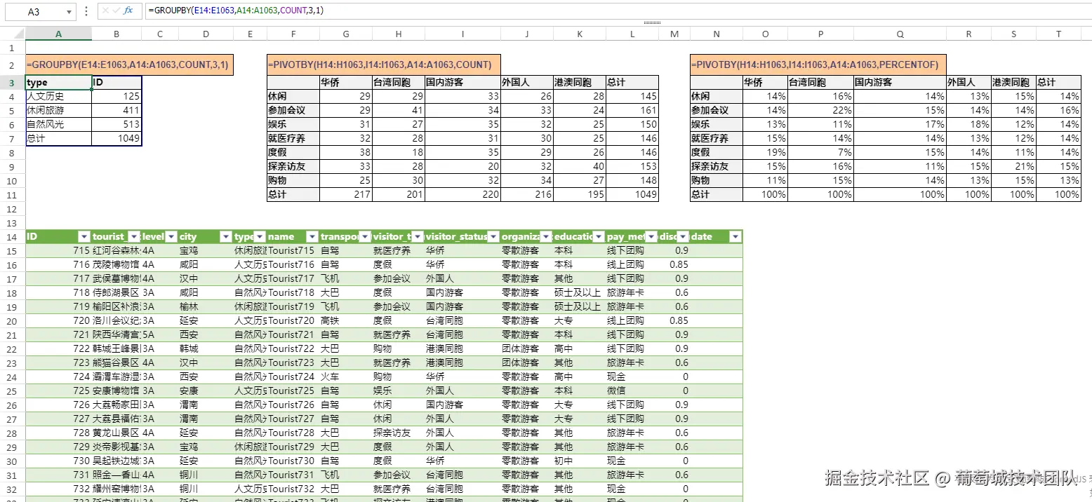 - 自描述性函数:GROUPBY(按行分组)、PIVOTBY(双维度透视)、PERCENTOF(百分比计算)函数名即功能,降低学习成本。