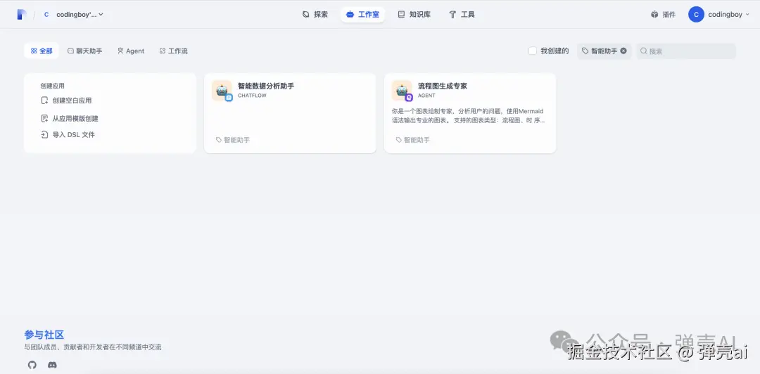 前面升级还比较顺利,三下五除二就完成了,于是乎我迫不及待地打开浏览器访问dify控制台,打开工作室,之前编排的应用还在。