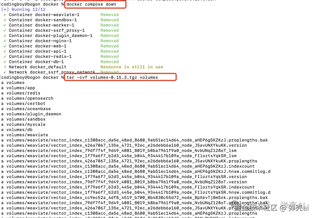 使用docker-compose部署的dify,数据卷默认指向volumes目录,备份数据卷可以避免业务数据丢失或者升级导致的业务数据异常问题。