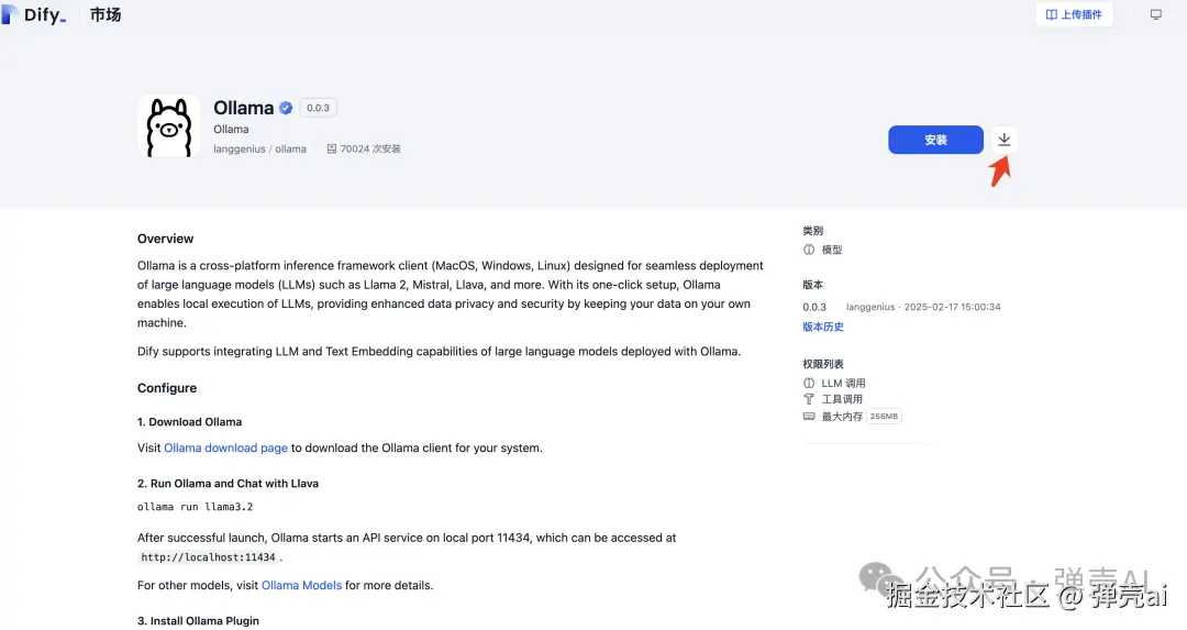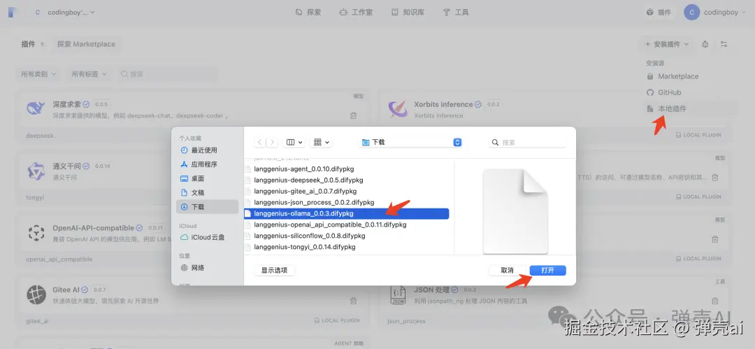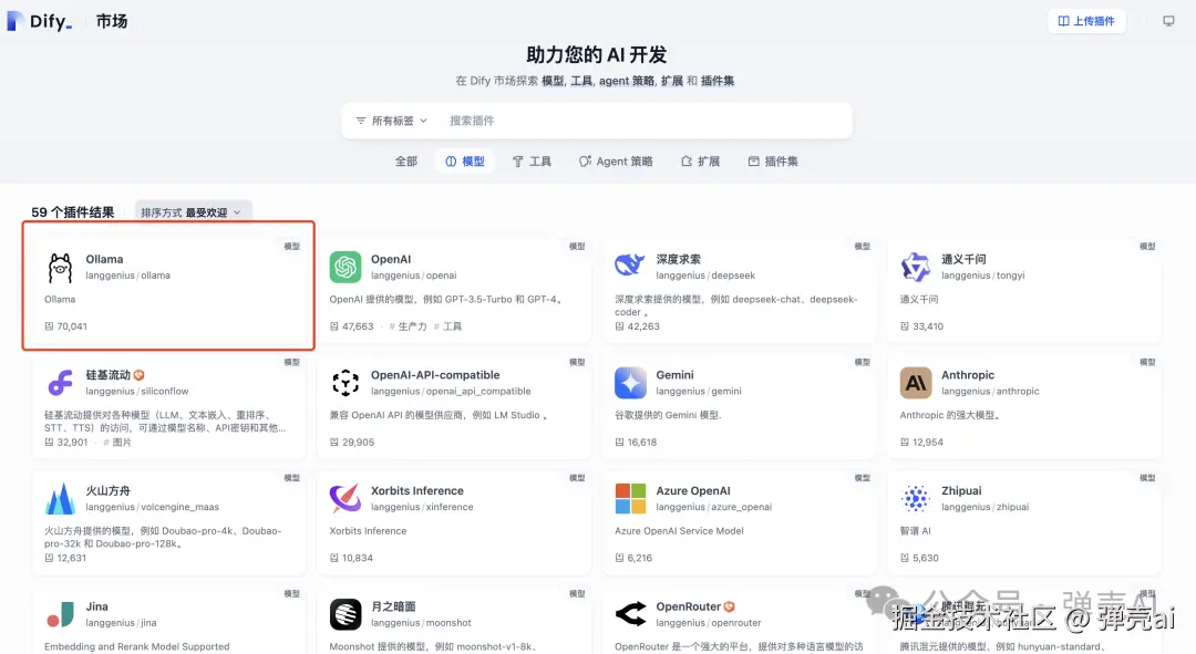 离线插件下载:访问Dify市场,下载插件离线文件,如下 本地插件安装:插件安装选择本地插件,