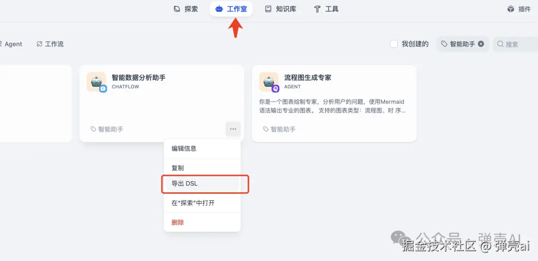 进入dify工作室页面,将重要的应用导出DSL,确保升级万无一失,这一步会被绝大多数人忽略。抛开版本升级不说,在平时最好也养成定时备份的习惯,尤其是团队协作的场景下。