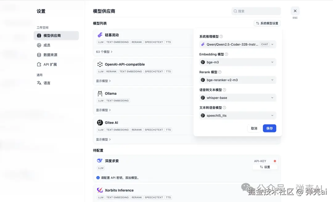 同理,按照离线的方式,把上一版本有用到的模型供应商插件都装好,然后再打开设置界面,查看模型供应商详情。可以看到,之前配置的信息全都还在。
