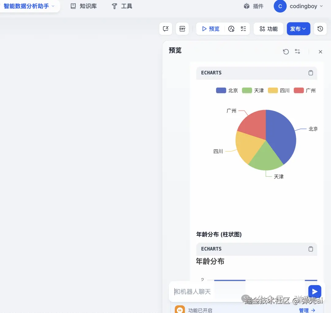 前面可以看到,插件安装完成之后,之前的大模型配置信息都还在。再测试下前面分享过的两个简单应用吧,经过测试证明,版本升级成功!