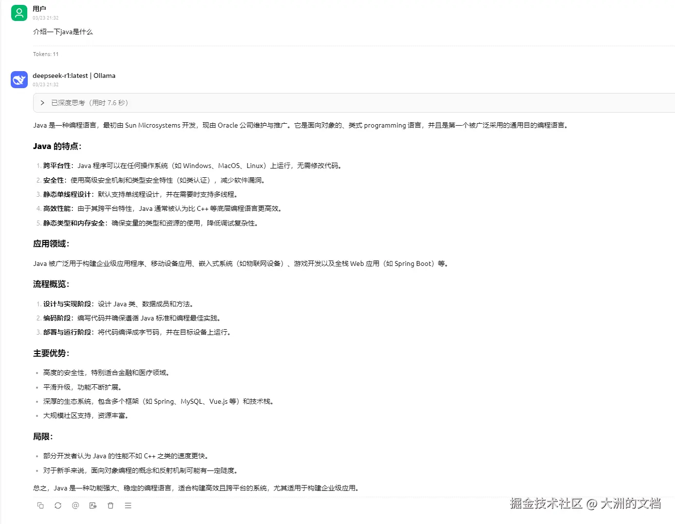 这样子本地部署就完成了,可以直接发送你想问的问题向他提问