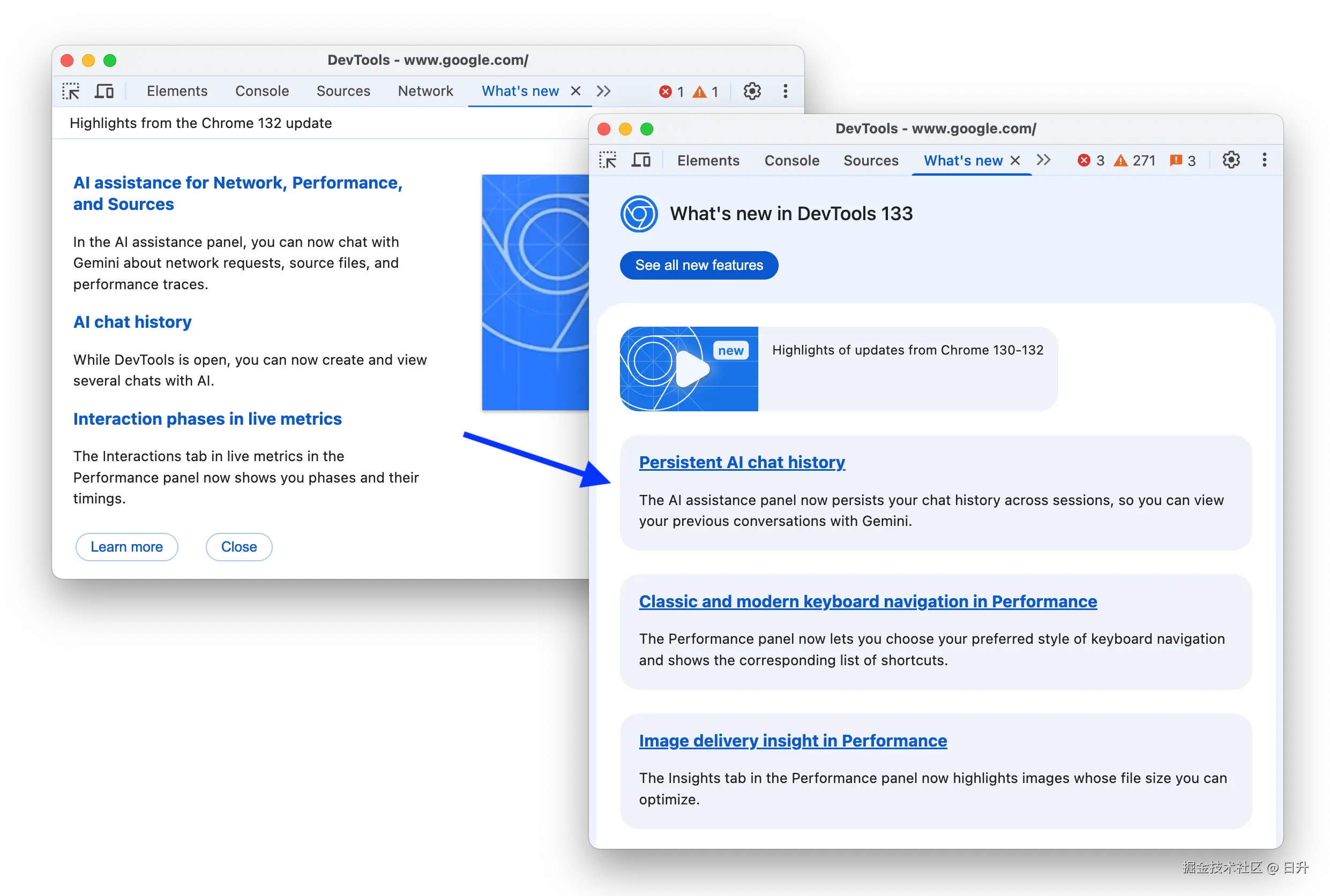 What’s new 面板采用了全新外观,更加贴近 Chrome 的设计风格。