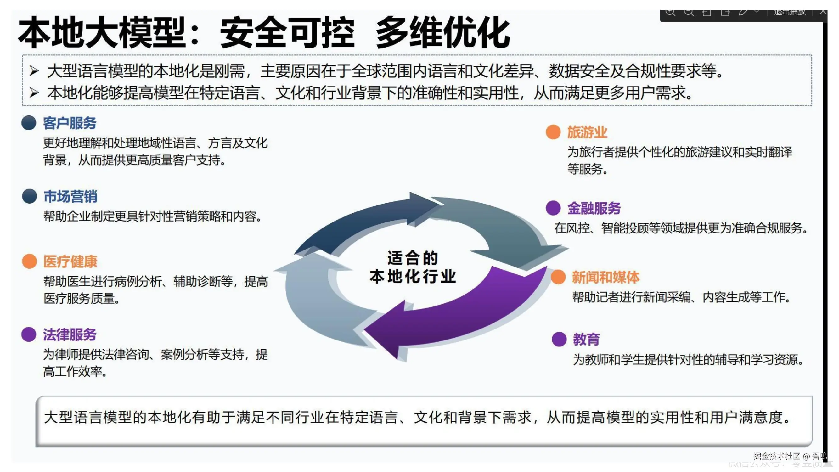 提供优化模型交互的实用方法:避免复杂模板,直接描述需求;添加“说人话”提示词提升通俗性;通过“深度思考”指令延长推理时间;利用文风转换功能模仿特定风格(如鲁迅、特朗普)。同时强调需人工审核AI输出,警惕数据误用和逻辑错误。 - 部署与实施