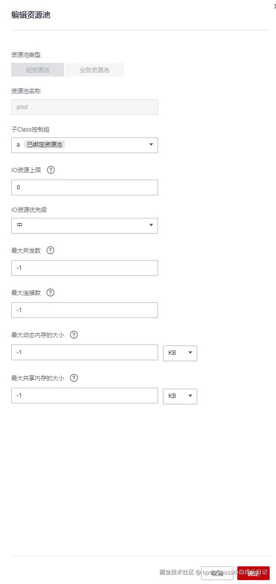 用户可以通过资源池管理功能修改组资源池或业务资源池,为后续数据库用户绑定资源池实现用户粒度的资源管控做准备。