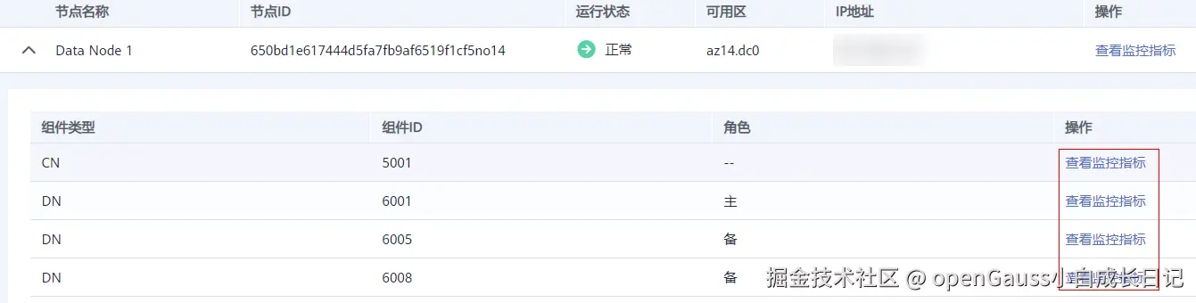 在实例详情页的“节点列表”处,单击“节点名称”后的“查看监控指标”,进入监控指标概览页。