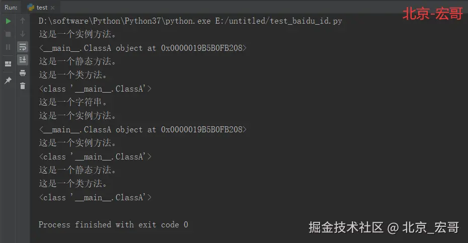 test = ClassA() # 初始化一个ClasssA的对象,test是类ClassA的实例对象