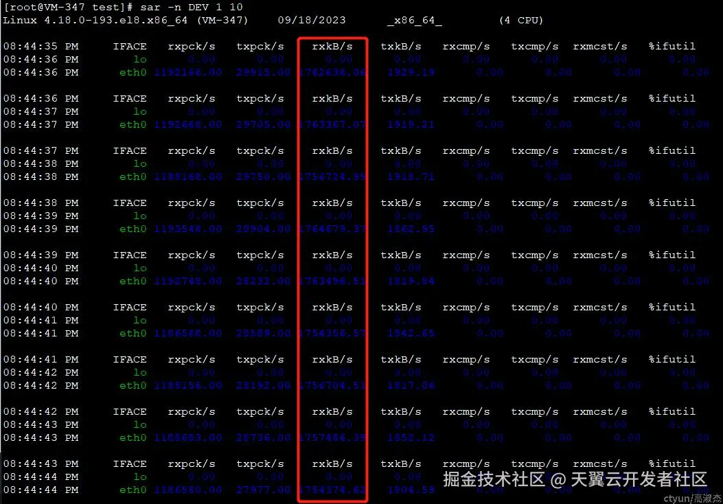 sever端通过执行sar -n DEV 1 获取 rxkB/s,转换为带宽(kbps)=字节数(rxkB/s)*8,即为bps