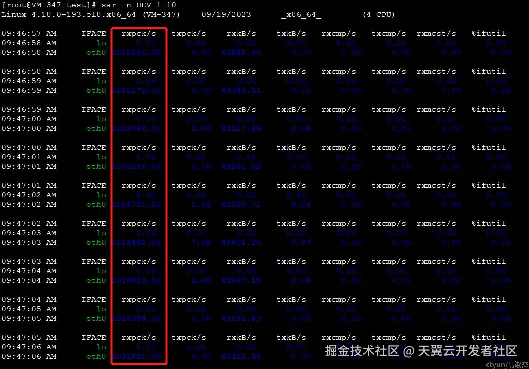在server端执行sar -n DEV 1 查看rxpck/s 列 即为收包pps