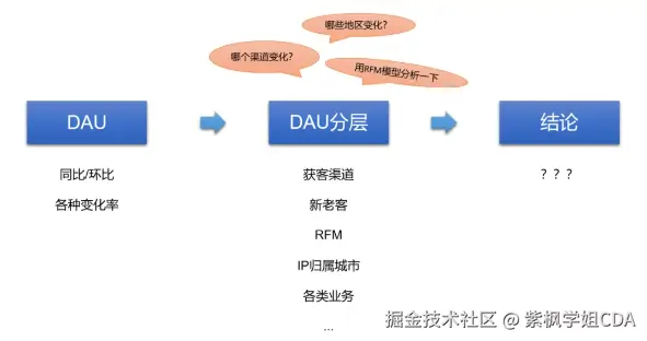 按照不同的维度对用户进行细分,常见的维度包括新老用户、地域、年龄、性别、用户行为(如购买频率、使用功能模块等)。分别计算各细分群体的 DAU,比较不同群体之间的差异,找出对 DAU 贡献较大的关键群体。