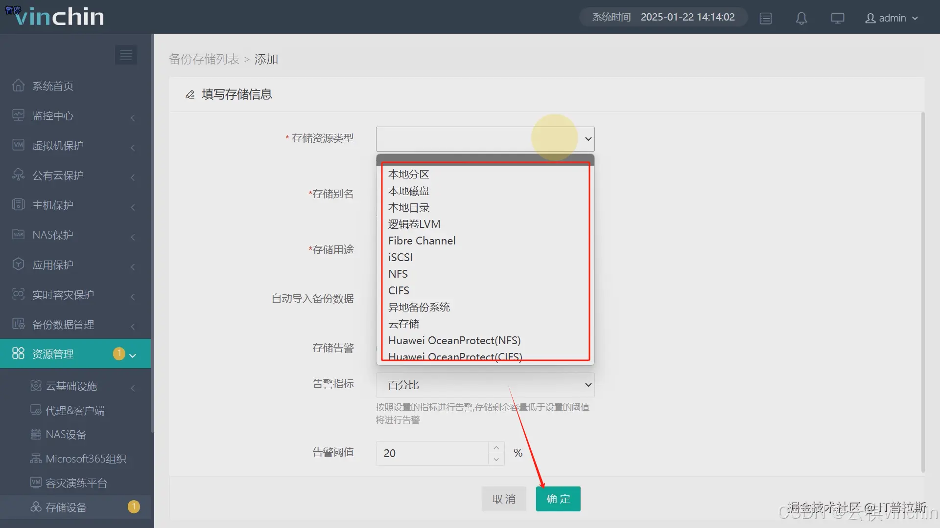 本次演示以添加本地磁盘为例,添加备份服务器自带的本地磁盘,如图至图