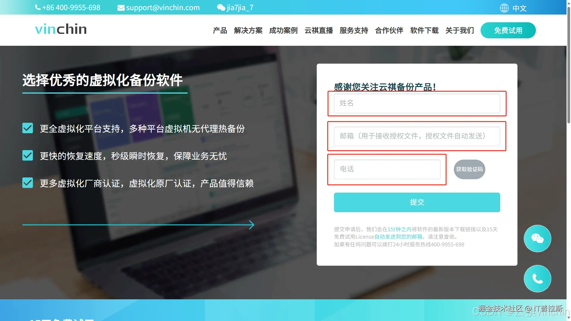访问官网,点击免费试用,在弹出的表单中填写姓名、邮箱以及联系电话,1分钟内试用授权文件将发送至您填写的邮箱中,如图3图4。