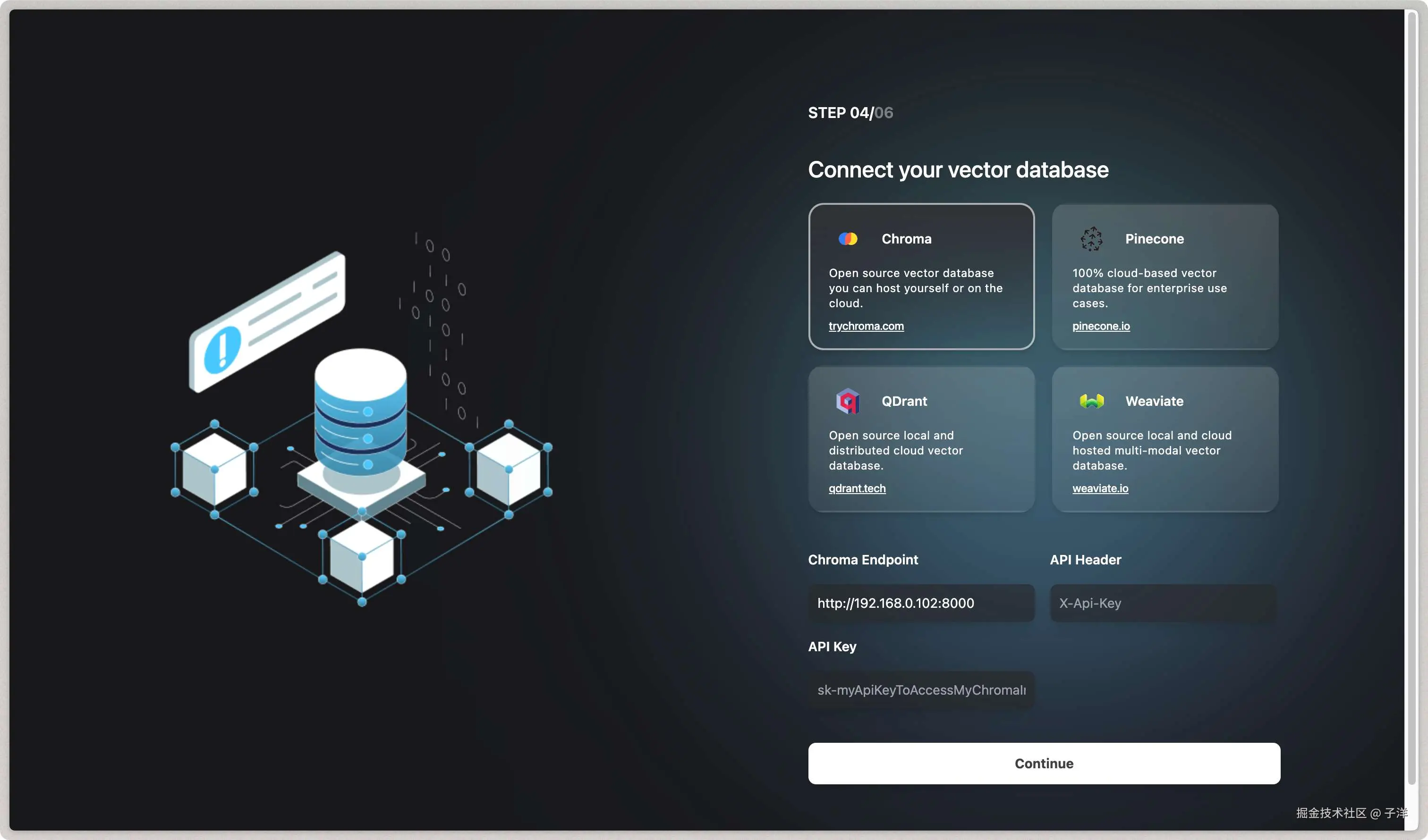 在这里,你可以将系统与已有的向量数据库进行关联。如果你的向量数据库没有设置 API Key,那么相应的 API Header 和 API Key 字段可以暂时留空。在链接过程中,请确保你提供的数据库连接信息准确无误,以便成功建立连接。