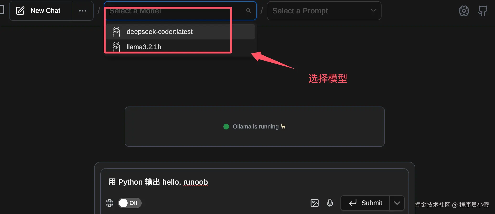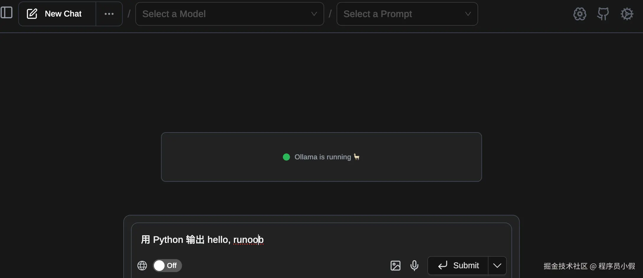 打开后就可以看到 Ollama 正在运行的提示,如果还没启动则需要启动 Ollama:
