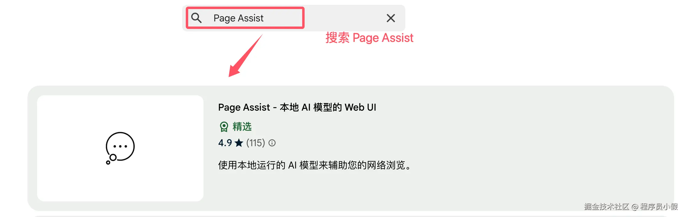 访问 chromewebstore.google.com/search/,搜索 Page Assist:
