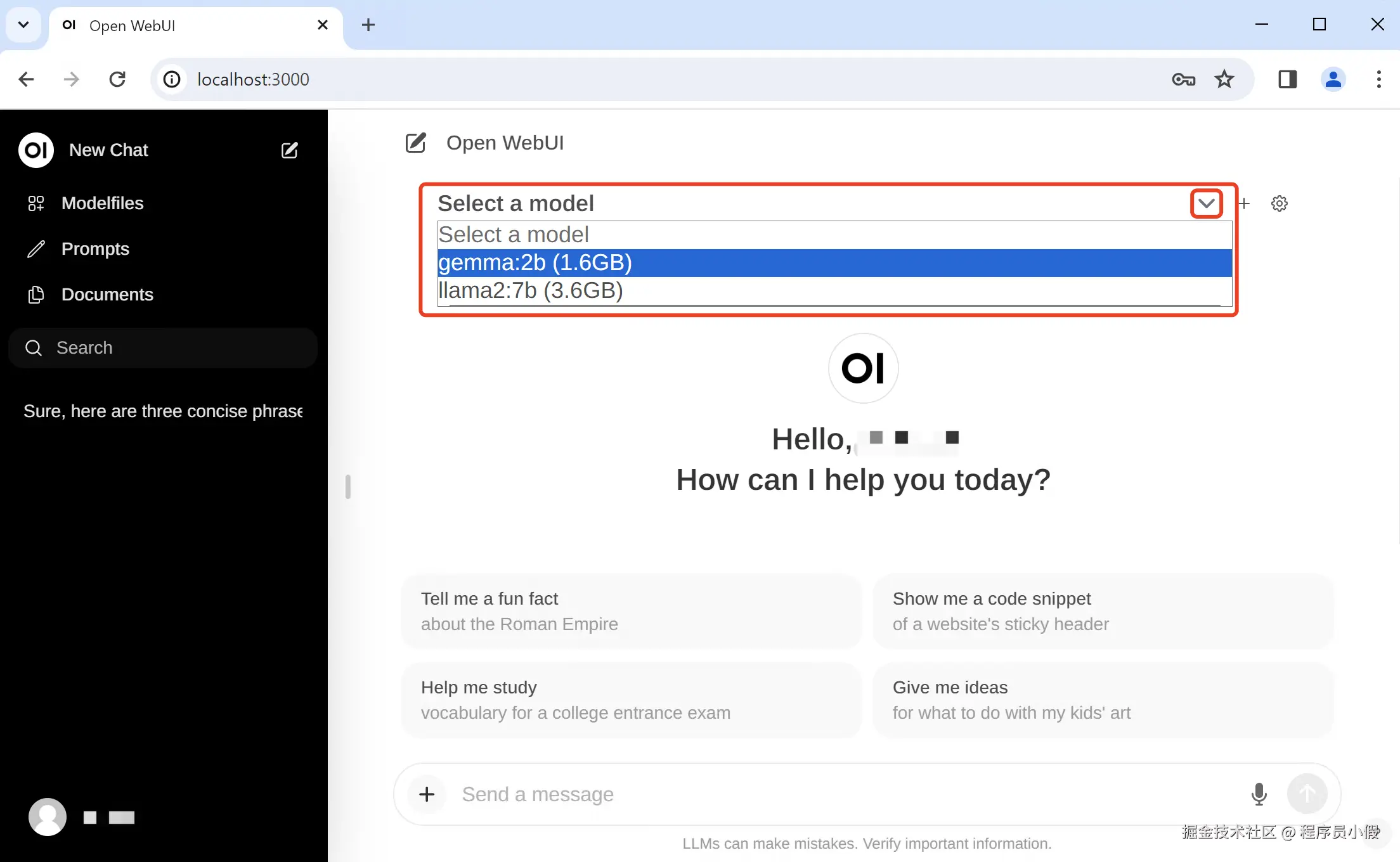 安装完成后,你可以通过访问 **http://localhost:3000** 使用 Open WebUI。