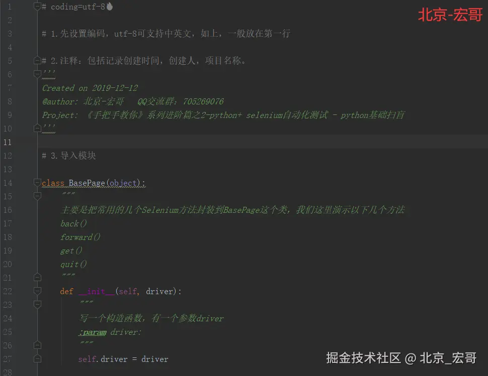 上面self.basepage的几行代码就是调用我们自己封装的方法去执行相关webdriver操作。这个只是一个简单的封装介绍,等后面,我们介绍了字符串切割,我们会再次介绍二次封装Selenium方法,例如将会把八大find_element方法封装到一个方法里去。