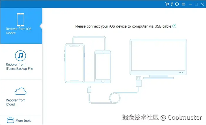 - 提供从iOS设备、iTunes 备份或 iCloud 备份恢复等选项。