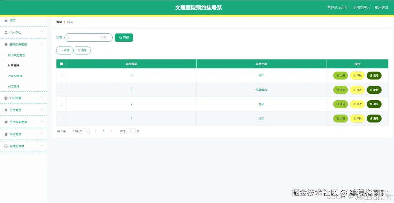 图3-4科室类型管理界面