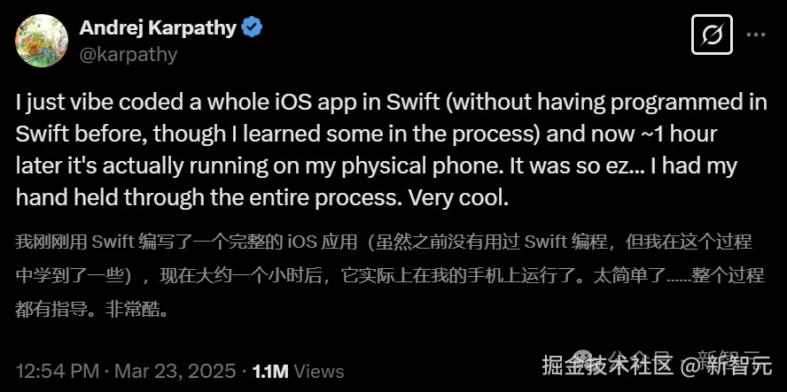 【新智元导读】氛围编程彻底火了。刚刚,没有任何 Swift 编程经验的 Karpathy 亲自代言,通过与 ChatGPT 多轮对话,仅用 400 行代码构建出自己的首个 iOS 应用。