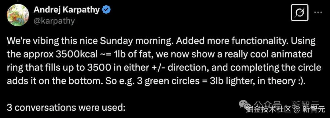 首次提出这一概念的 AI 大神 Karpathy,再度分享了自己的编程新姿势——用 Swift 编写首个完整卡路里追踪的 iOS 应用。