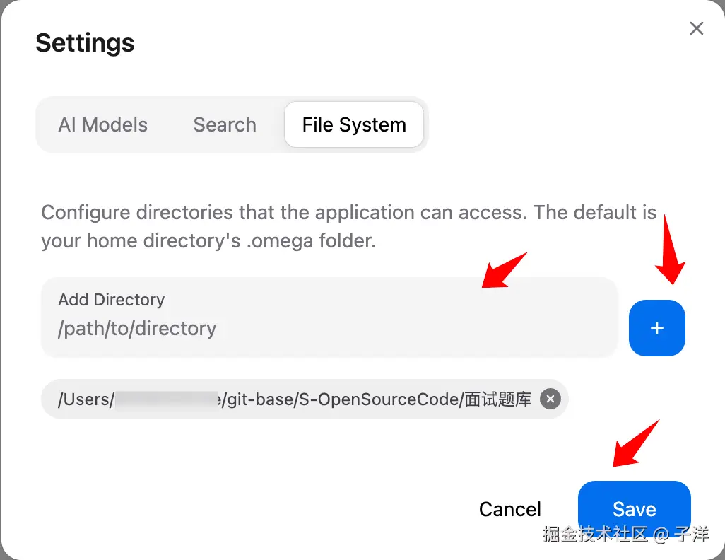 - 在 File System 选项中,手动添加可访问的文件夹路径。