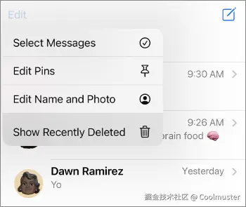 iPhone 上最近删除的消息怎么样?如果您的 iPhone 运行的是iOS 16 或更高版本,您可以利用“消息”应用中的内置恢复功能来检索过去 30 天内删除的短信。以下是如何在 iPhone 上查看最近删除的消息:
