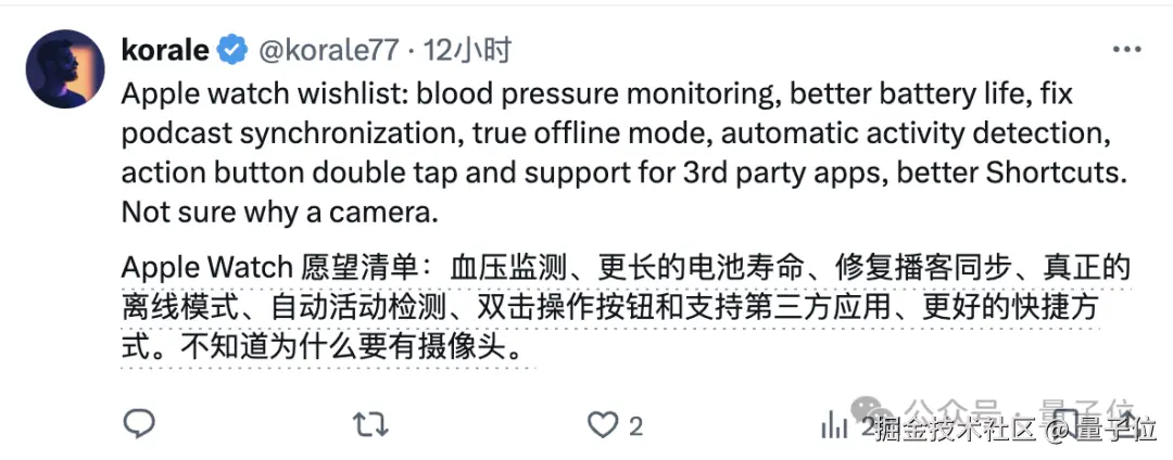 AI 之外,古尔曼也通报了苹果手表一些其他功能的新消息。