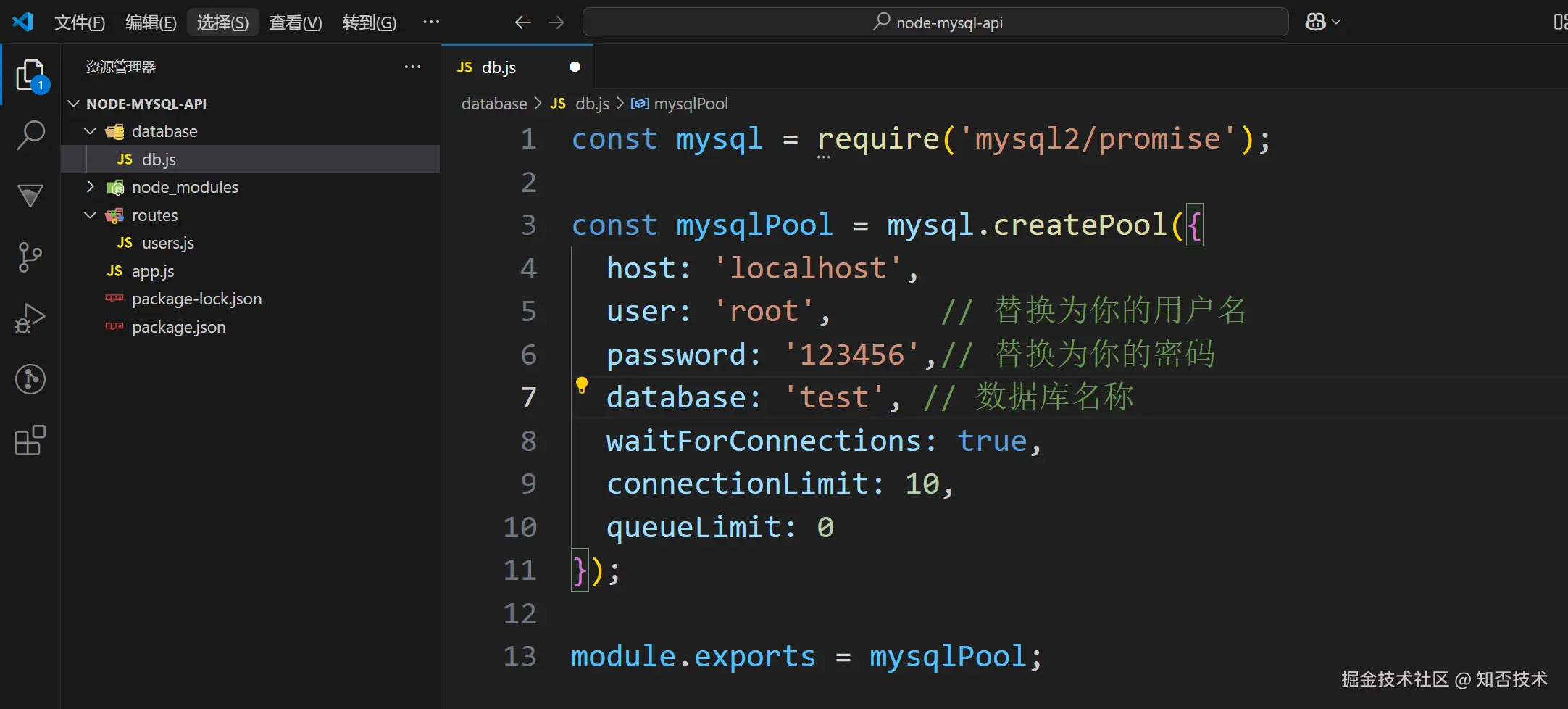 - 修改 db.js 里面连接 MySQL 数据库的账号密码等配置项
