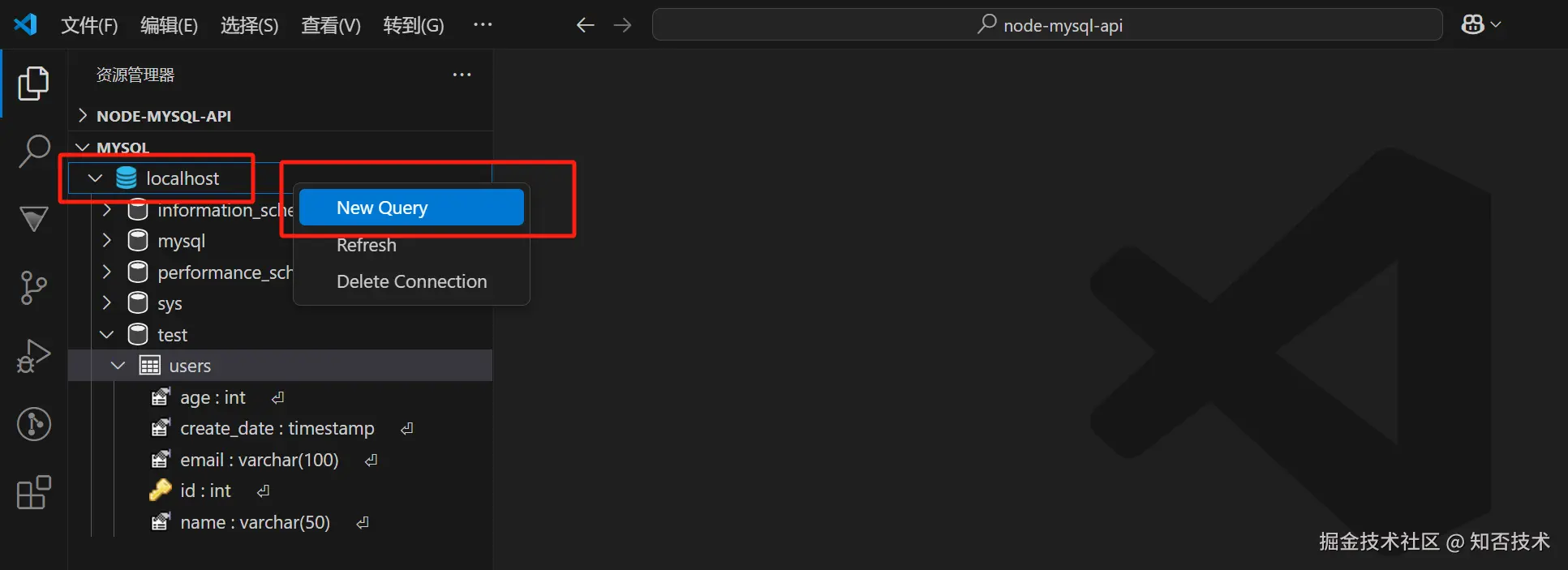 在 VSCode 中新建文件夹 node-mysql-api