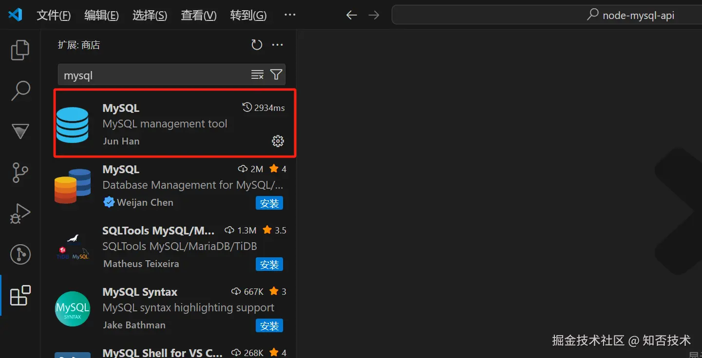 前面我们安装好了 MySQL 的服务端,接下来要使用客户端操作服务端了。这里使用 vscode 的 MySQL 客户端插件。
