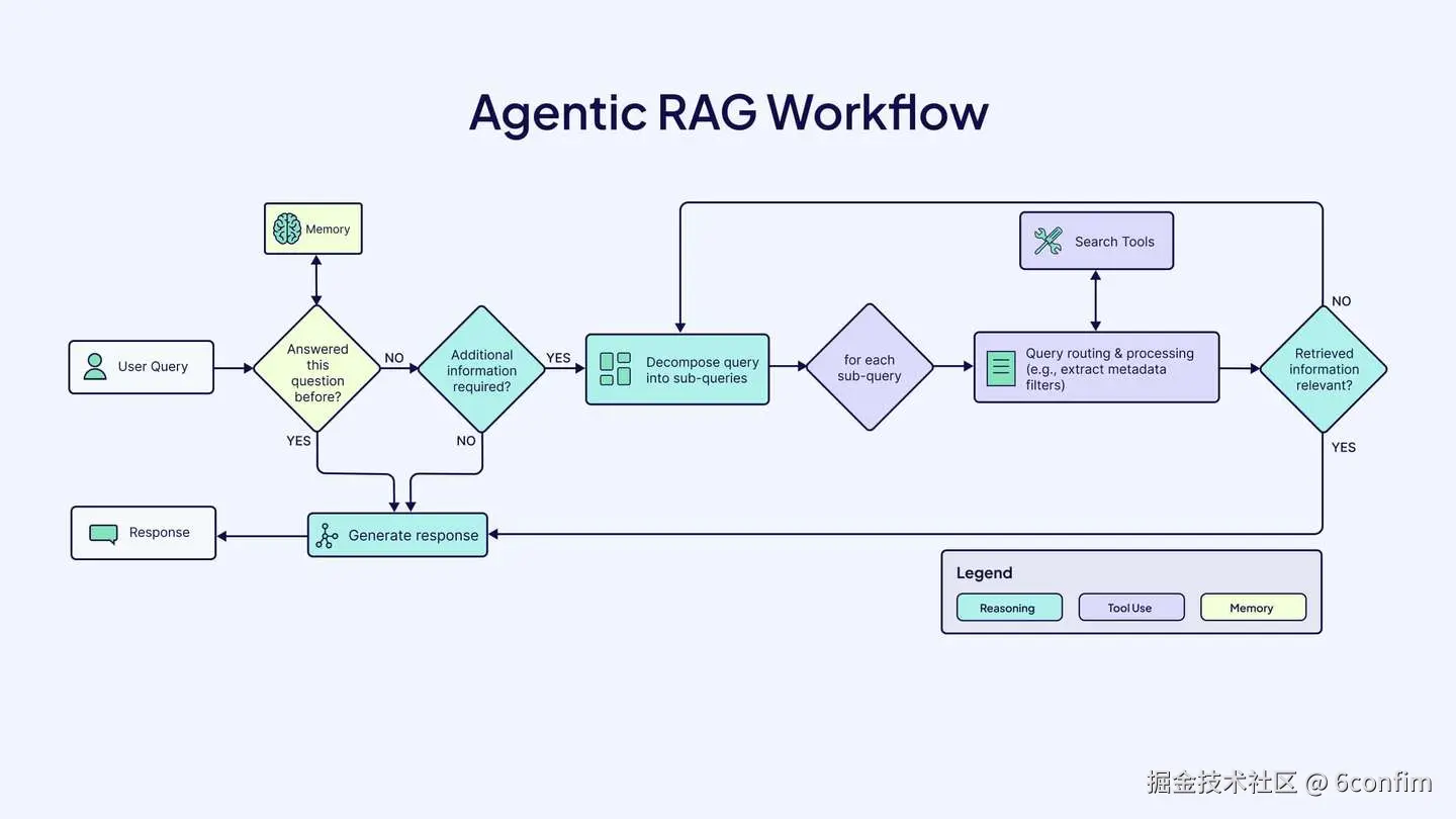 在规划阶段,智能代理可以通过查询分解将复杂查询分解为更小的子查询,或确定是否需要向用户请求额外信息来完成请求。