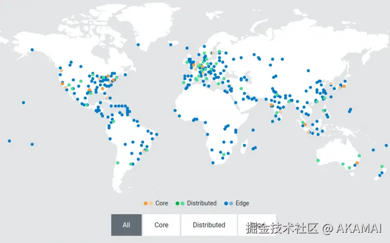 上图显示的是Akamai的分布式网络。这种架构在设计上能够动态扩展,以应对流量高峰和需求的波动。这种弹性确保了基础设施即便在最苛刻的条件下也能保持快速响应和弹性。这种更靠近用户的布局大幅缩短了内容到达设备所需的时间,从而可以降低延迟,为最终用户带来更流畅的流媒体观赏体验。