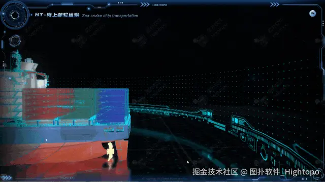 图扑智慧船舶数字孪生系统,运用自研 HT 强大的渲染引擎进行建模仿真,将船舶各系统以数字化形式精准映射,从而实时、直观地呈现船体结构状态、航行状态、动力系统工况,以及关键设备的能耗指标。系统还紧密结合航行状态实时跟踪功能与自动导航系统,持续收集、分析船舶航行中的各类数据,为智能船舶在复杂多变的航行环境里及时提供科学有效的决策支持。
