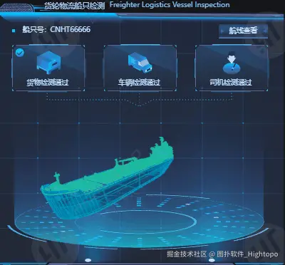 除上述航运船舶外,图扑 HT 还搭建了多个智慧舰船数字孪生模拟场景。