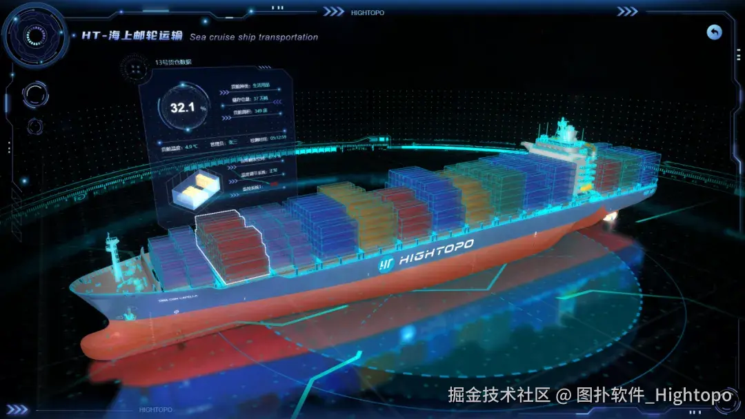 图扑软件依托自主研发的 HT for Web 轻量化产品,打造出覆盖智慧港口、物流仓储、智慧船舶航运等多元化解决方案。方案内集成实时监控、智能预警、资源优化及科学决策功能,形成全方位的生态管理运营体系,助力水运行业智能化转型迈向新高度。