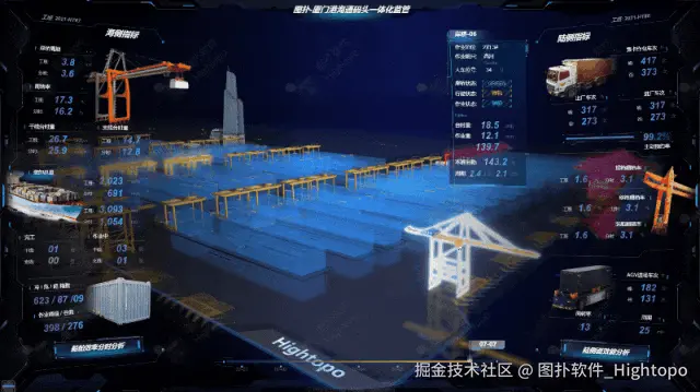 基于图扑 HT 数字化平台,港口管理者可以进行模拟决策、远程管控,打破了传统管理的时空限制,实现了管理的精细化和智能化。这种创新管理模式不仅提升了港口的运营水平,还为港口在激烈的市场竞争中赢得了先机。作为数字孪生和数据可视化行业的先锋,图扑软件将继续秉持创新精神,不断完善解决方案,为水运行业的智慧化转型持续赋能,助力更多港口实现数字化升级转型。