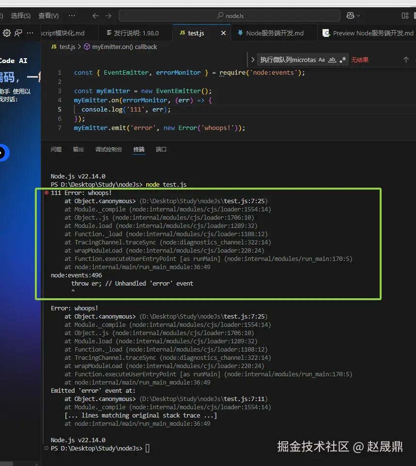 我们可以使用 events 包中的 errorMonitor 来作为事件名称进行错误事件的注册。