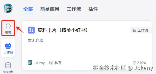 将工作流保存并发布,在【聊天】中开始新对话,如下图: